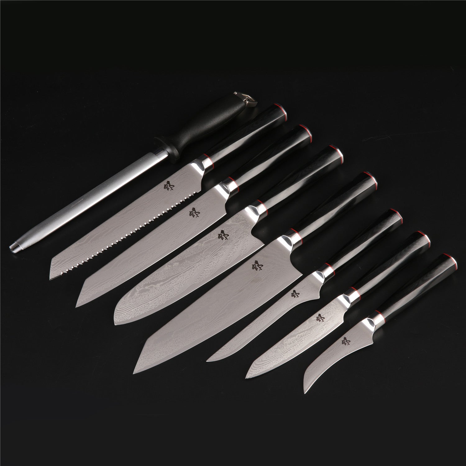 Blade ï¼ Xuan Series kitchen knife set is crafted with AUS10 Steel in the core, surrounded by 72 layers of SUS410 steels, forged together to what we called Damascus steel. This combination provides exceptional strength, durability and stain resistance, keeping the knife sharp and hardï¼maintains it's functionality for much longer time.